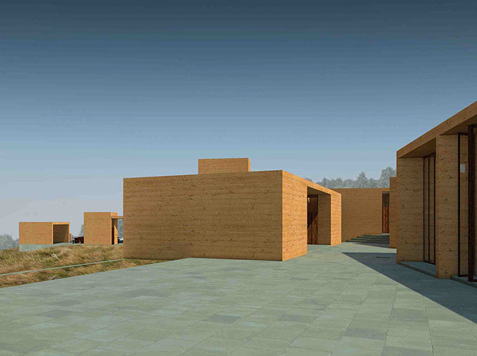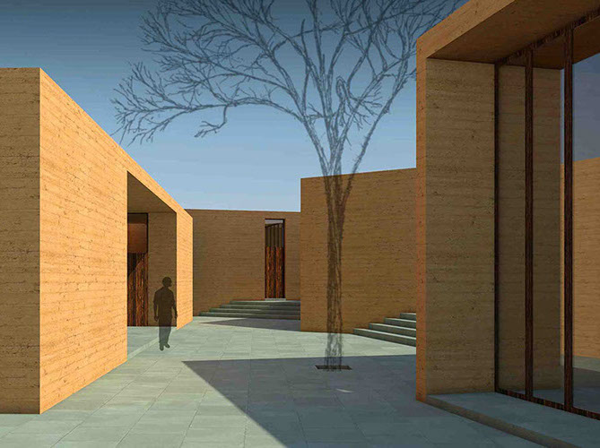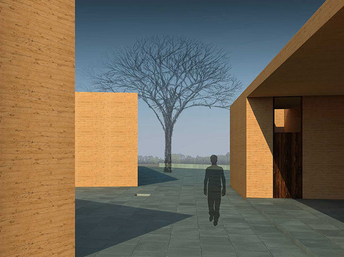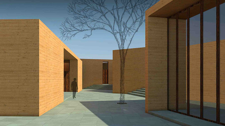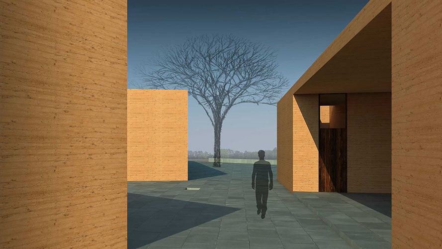A 10,000-square-foot residency space will house eleven brick-dyed, cast-concrete apartments, with windows facing Srihatta’s landscape. Created as a meditative space to inspire creativity and mesmerize the senses, these apartments will have 11-foot ceilings – each with a different species of local scented tree to grow inside.